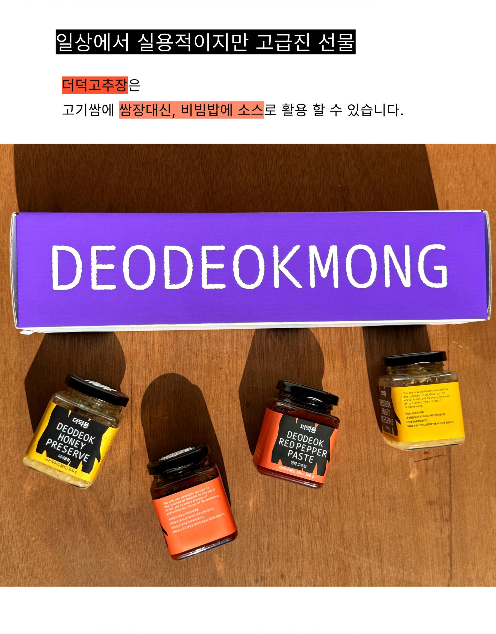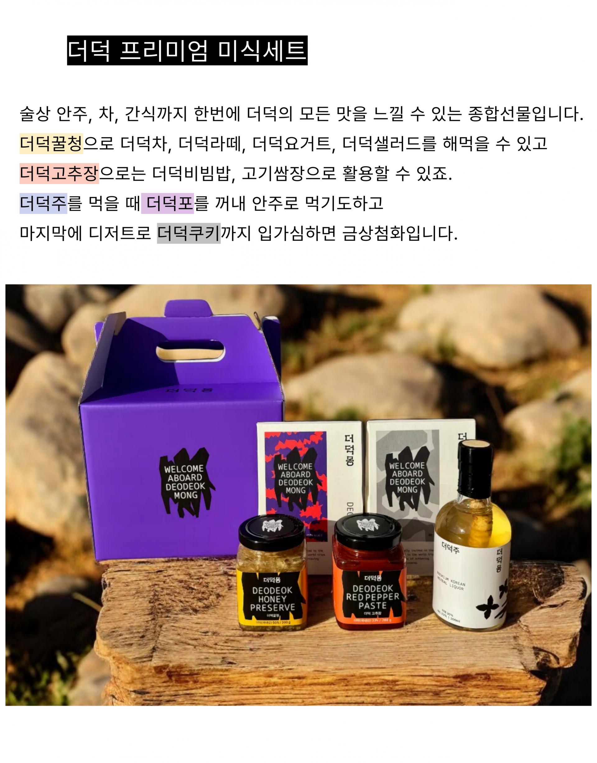 더덕몽은 더덕을 조금 더 멋지고 맛있고 가치있게 만드는 더덕 최고의 브랜드입니다.