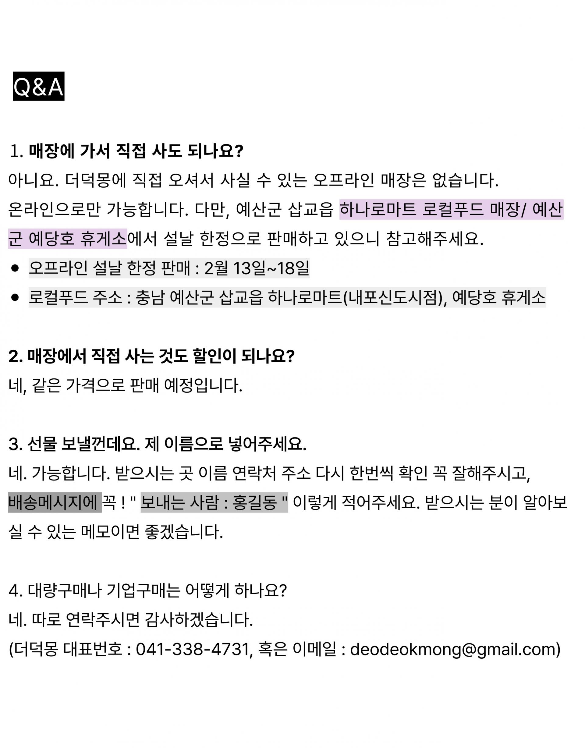 문의사항 | 카카오톡 "더덕몽"으로 문의주시면 빠르게 답변드리겠습니다.